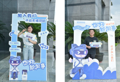 7月8日,校招新員工們懷揣期待陸續(xù)抵達(dá)公司。大家首先在創(chuàng)意打卡區(qū)留下入職首照,隨后在簽名墻上留下職業(yè)生涯的第一個(gè)“印記”。他們拿起筆,寫(xiě)下的不僅有自己的名字,更在筆尖流淌出對(duì)未來(lái)職業(yè)生涯的美好愿景,字里行間滿(mǎn)是對(duì)未來(lái)的憧憬與向往。